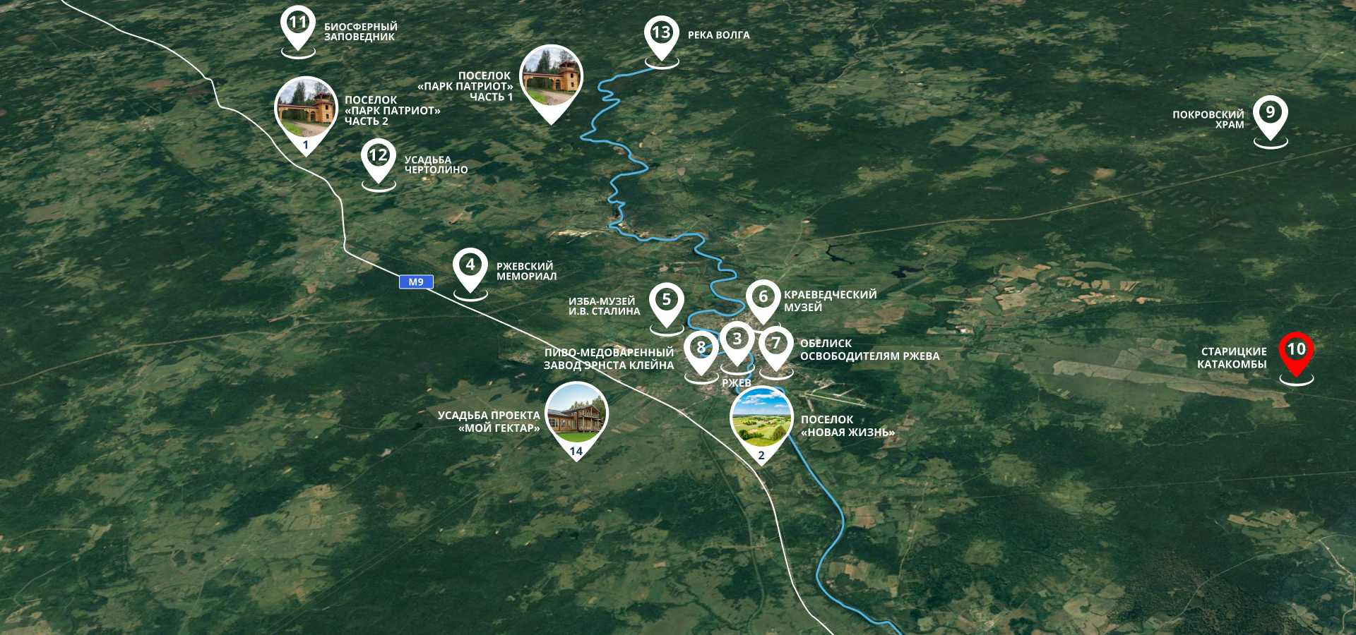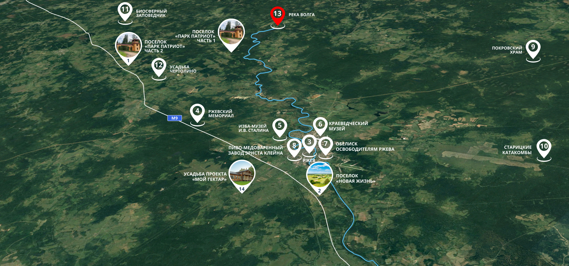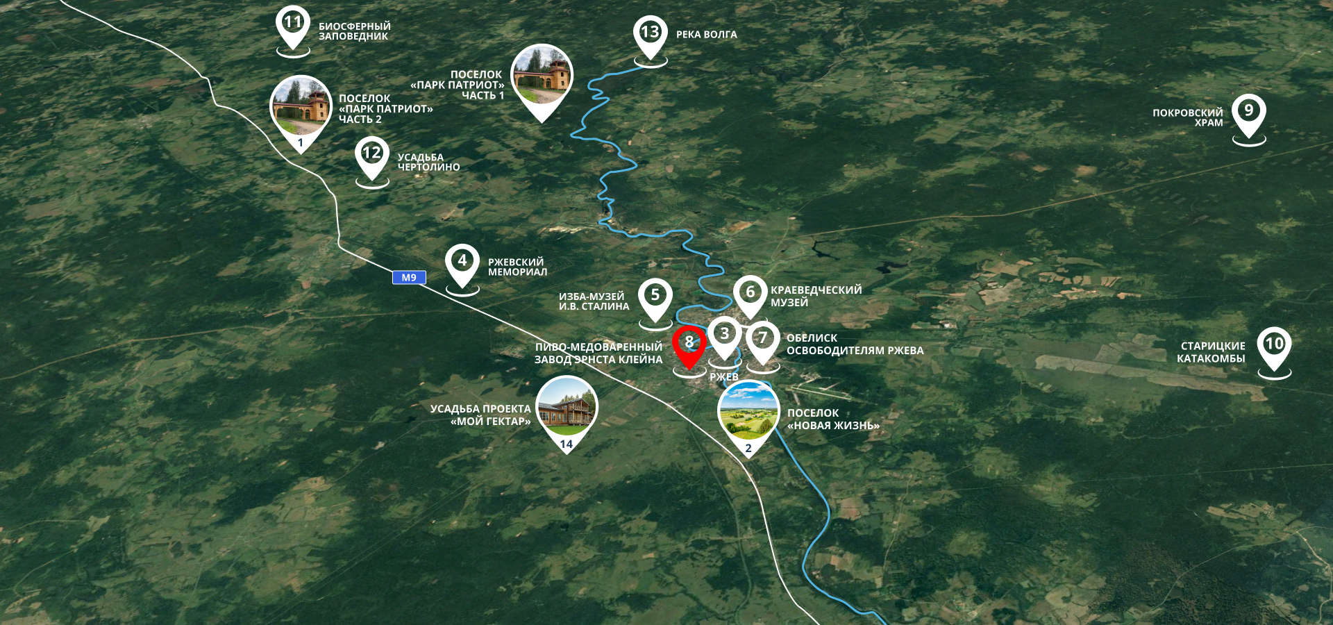 В 30 км от поселка во Ржеве, городе воинской славы, множество достопримечательностей, которые стоит посетить и посмотреть.